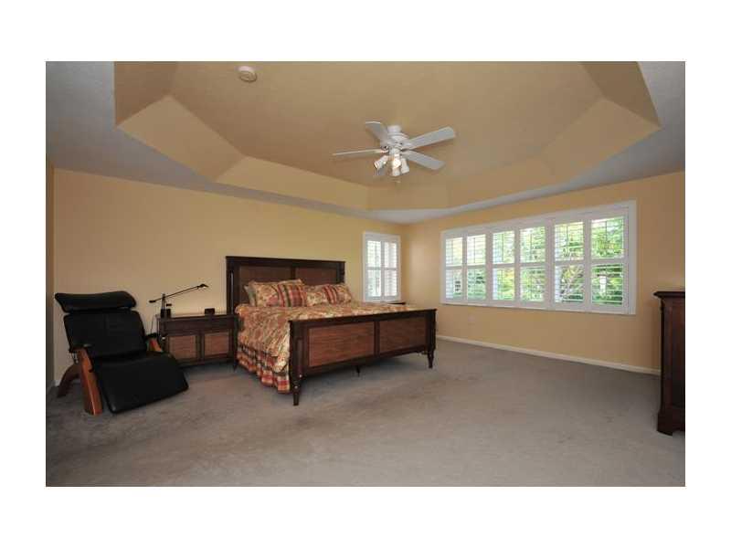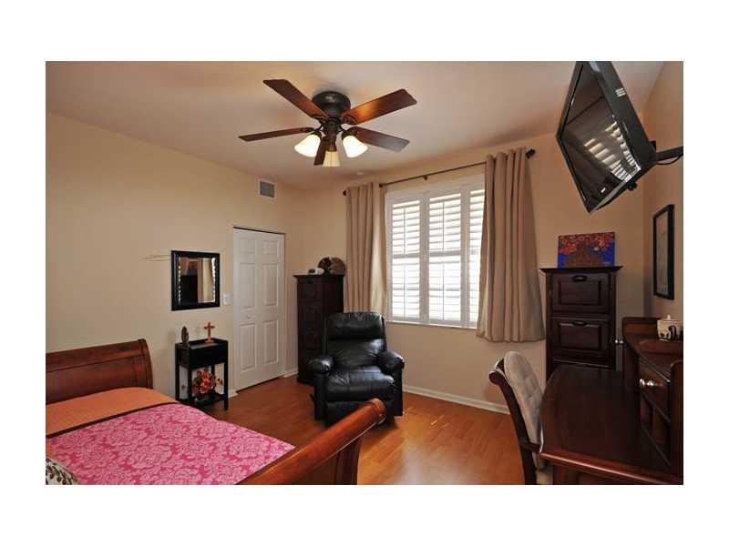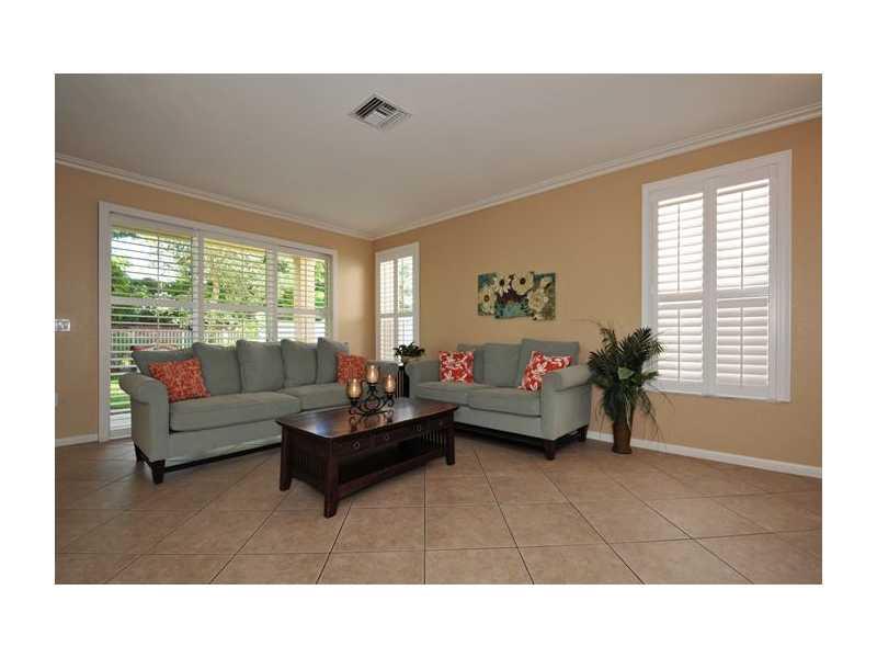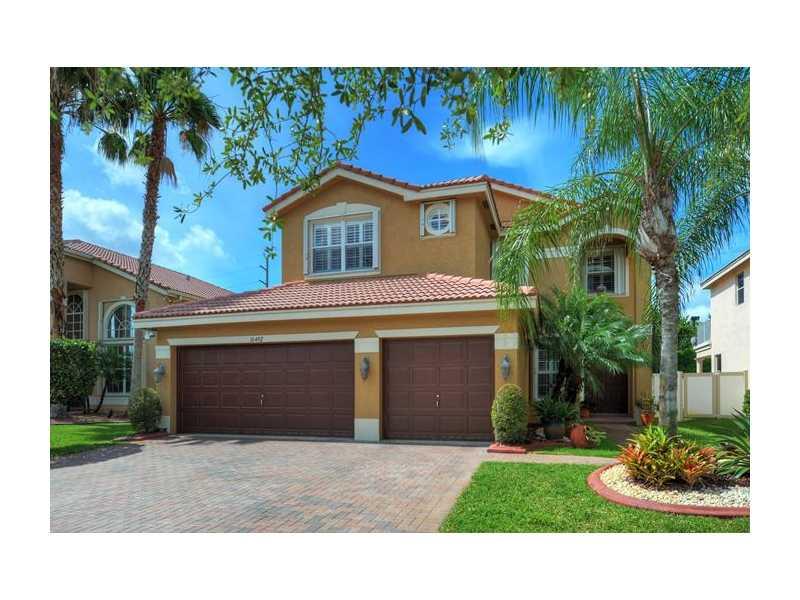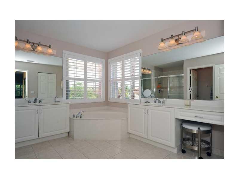 Grand 2/story home located on quiet cul-de-sac in small guard gated community! No neighbor behind! One bedroom/bath on 1st floor! Huge master suite has sitting area, his/hers walk-in closets, fabulous master bath has dual sinks, separate tub/shower. Forma l dining. Spacious eat-in kitchen with steel appliances, breakfast nook, snack bar. Tile on diagonal, crown molding, chair rail, closet organizers, plantation & accordion shutters. Fabulous community pool! Mango,banana,papaya,guanabana trees. A+ schools!