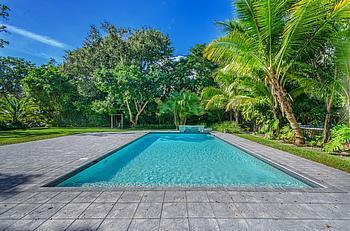 This charming 1-story family home sits amongst aged oak trees, lush landscaping & a 31,246 SF property in premier section of So Coral Gables. Renovated in 2006, this home & property poses an understated elegance that is rare to find! Upgrades include elec , partial plumbing, all baths, art lighting throughout main entertaining areas, hurricane protection including high impact sliding glass drs, original oak wood flrs & barrel tile roof. The home interior includes family bdrm wing, private study/media rm+++