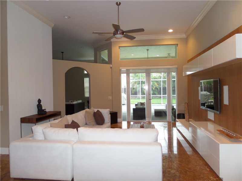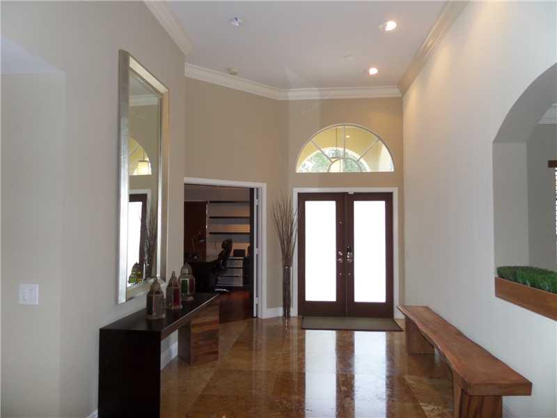 Elegant 5/3.5 Pool Home boasting Travertine Tile and Crown Molding throughout Living area, Laminate floors in Master and Office. Private Guest Room and Bathroom. Custom Closets, Large Office consist of a Built-In His and Her Desk with lots of storage, Sur round Sound in Living area and Patio. Laundry room with hi-efficiency washer and dryer, built in sink and cabinets. Foyer has built in planter. Covered Patio, Accordion Shutters, Elementary School continently located right outside the community.
