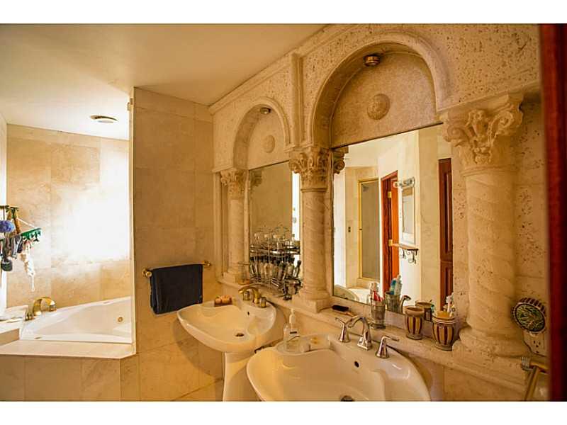 Charming 1941 Mediterranean 2 story home on rare 17,765 sq ft double lot, walled for privacy w/ electric gates & intercom & soothing indoor & outdoor fountains. 5,523 sq feet of living space w/ 6 bedrooms, 5.5 bath, 2 car garage, carport, fabulous yard, p ool, mango tree, solid mahogany doors throughout the residence. This home has tons of potential. Great family home, wonderful for entertaining. Great school district, across the street from La Gorce Golf & Country Club, + tons of storage, 3 beds upstairs.