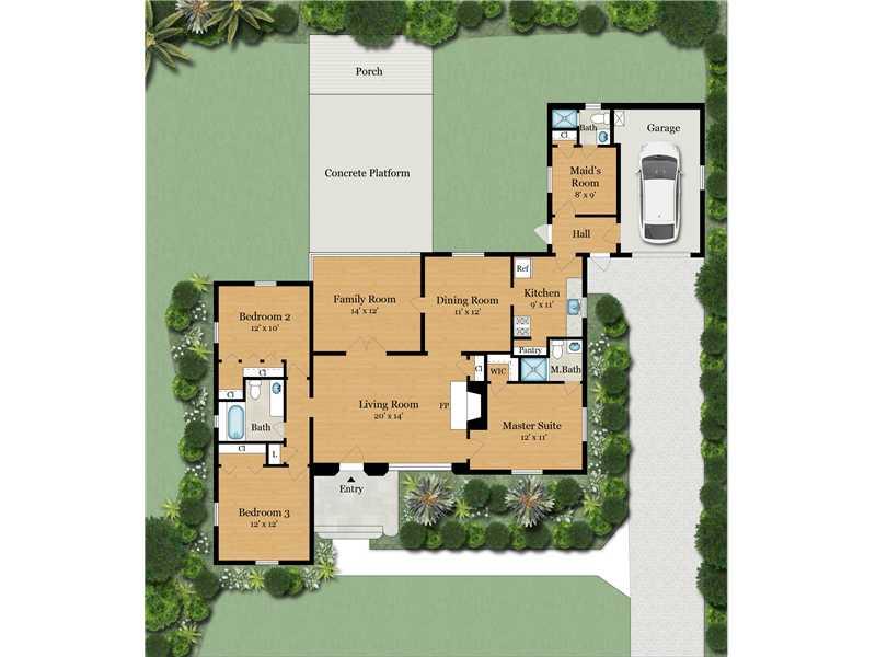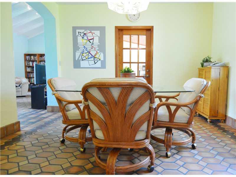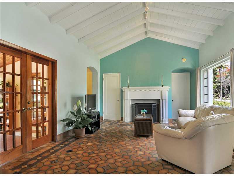 Super charming 1930's Spanish/Deco 3/2+ 1/1, large lot(10,000 sq.') close to Downtown Gables. A+ walkability score. Designed by important architect; Robert Fitch Smith. Needs some updating but very livable. Dramatic, cathedral ceiling, gorgeous, original mosaic tile floors, fireplace. Formal dining room, family room, master suite on West side of house, 2 bdms 1 bath on East side & a maid's room or office & bath off the kitchen. Party pavilion in backyard. Rm 4 pool. Kitchen needs updating. 1 Car garage