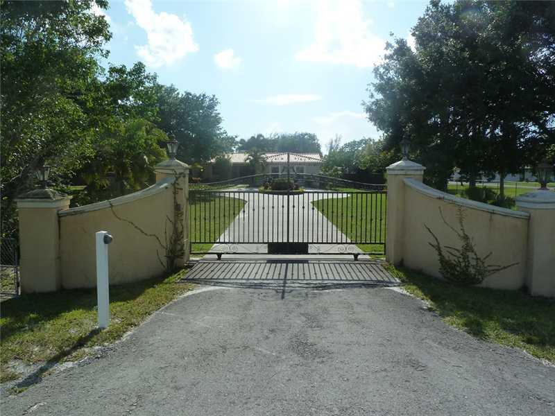 "HAVE YOUR RANCH IN THE CITY" Owner says Bring all Offers! This Magnificent 4 Beds,5 Bath,2 Acre home is centrally located in the Broward and Dade city line. Peaceful and Lush landscape with lots of land. Oversized kitchen with granite counters with a Hug e Island. New Cabinets,Stainless steel Appliances with Double Ovens and a Huge Refrigerator. Marble floors, Crown Moldings, Impact Windows and huge media room with wet bar for your guests. Beautiful Courtyard,Huge TIKI HUT! Heated pool Surround Sound.
