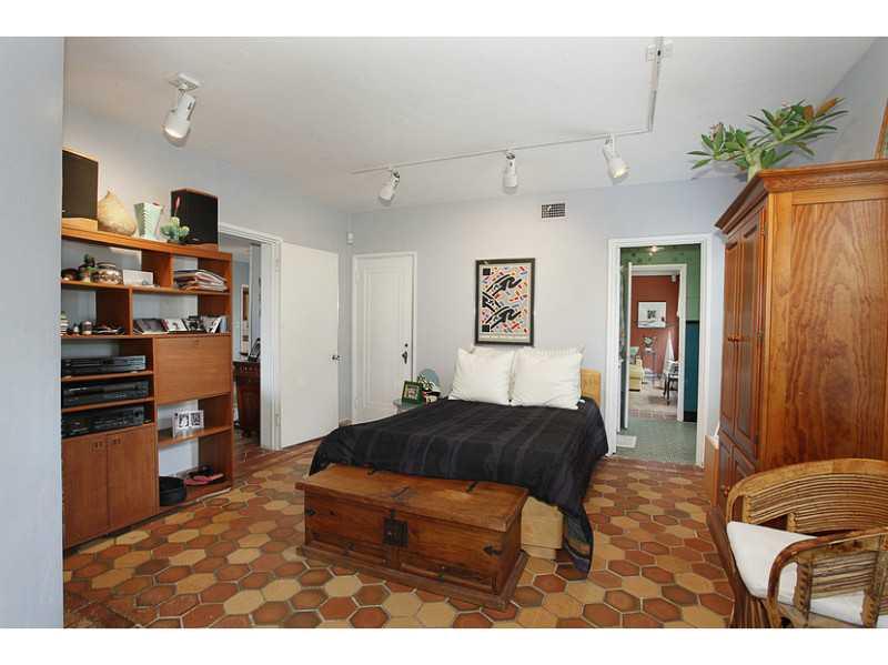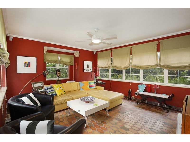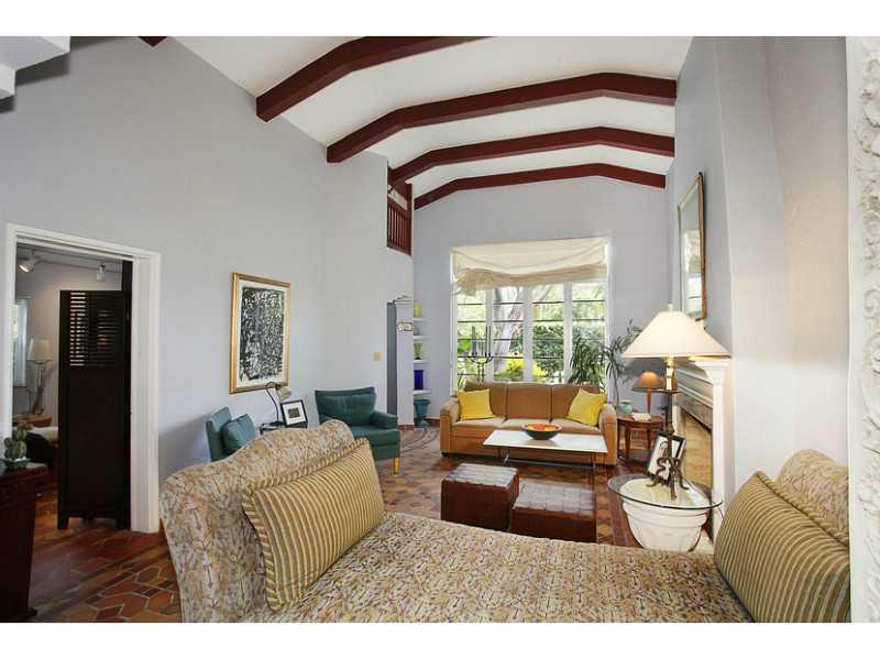 Looking for charm, Deco feel and Miami Beach glamor? This house has it all! Great Location; Private and lush front patio; foyer with a circular stairway; light and bright living room with fireplace, high ceilings and bookcase alcove; formal dining overloo king back yard/patio; retro galley style kitchen; maid's quarters/office; enclosed screened Florida room; 2 spacious downstairs bedrooms; master with sitting room upstairs; beautiful patterned quarry tile throughout first floor.