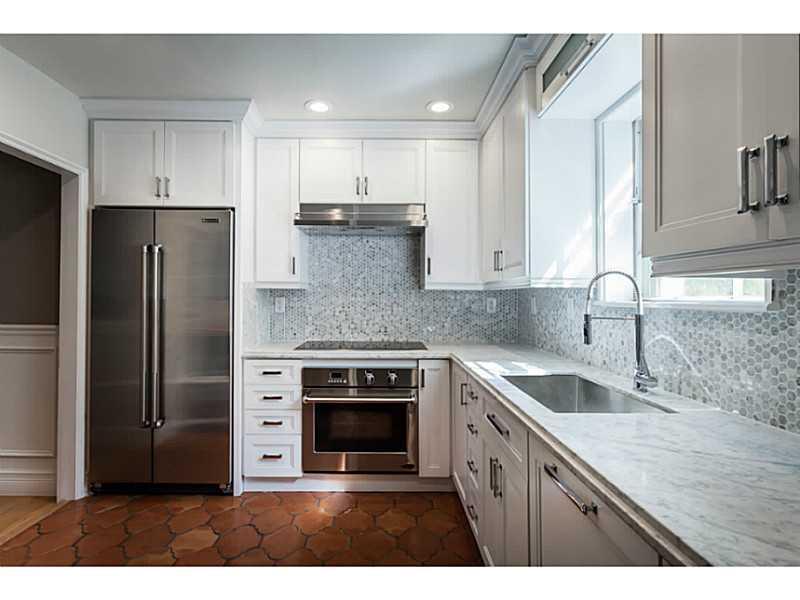 Impeccably updated 2 bedroom, 2 bath home in North Coral Gables. This charming 1940's home has a wonderful blend of original architectural features combined with modern enhancements. The home features an updated kitchen with Carrera marble and stainless steel appliances, beautifully appointed Carrera marble baths and 6-inch oak floors in the dining and living room. The home also features a delightful sun porch filled with natural light and original Cuban-tile mosaic floors, and a garage.