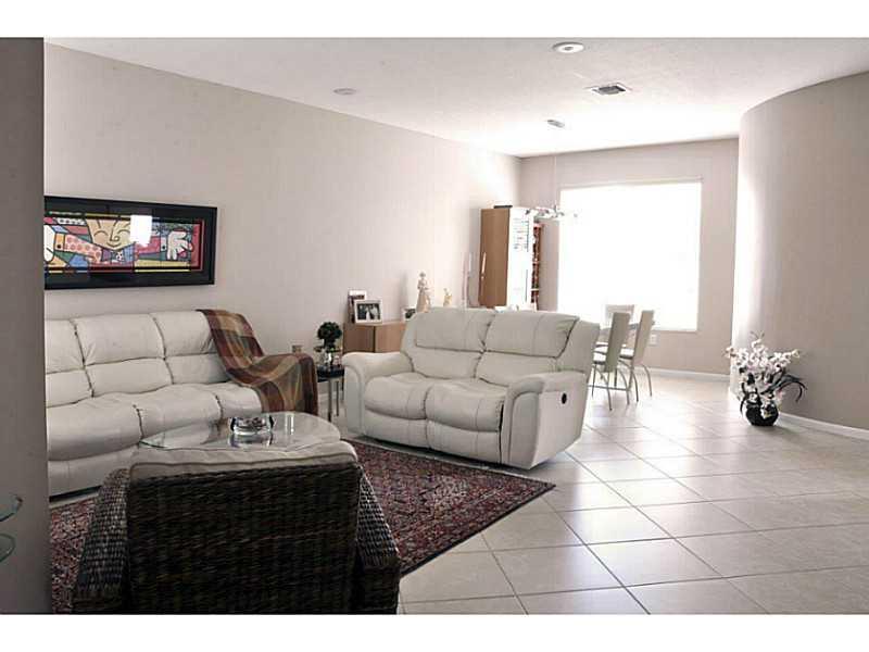 CUL-DE-SAC. Fantastic 4 bedroom 3 bath home in gated community in the heart of Miramar! Tile throughout living areas, volume ceilings, open kitchen with breakfast area. 1 bedroom with walk in closet and full bathroom in first floor, can be office or guest room. Master upstairs plus 2 bedrooms and 1 bath. Master has 2 walk in closets. Laundry room upstairs. Great community with clubhouse, 2 pools, spa, fitness center, playground. Hurry don't miss this opportunity!!