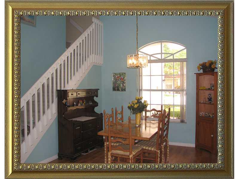 Carefully maintained classic 4 bedroom, 2.5 bath Silver Lakes home with side entry garage. Open, inviting floorplan with vaulted ceilings and volume ceilings downstairs. Master Bedroom on ground floor. Master bath includes separate garden tub and shower, dual sinks. Wood laminate flooring throughout downstairs except tile in Master. Newer Berber carpet upstairs. 2 screened patios - 1 private and off the Master. Fenced backyard for privacy. Accordion hurricane shutters. Separate Laundry Room.