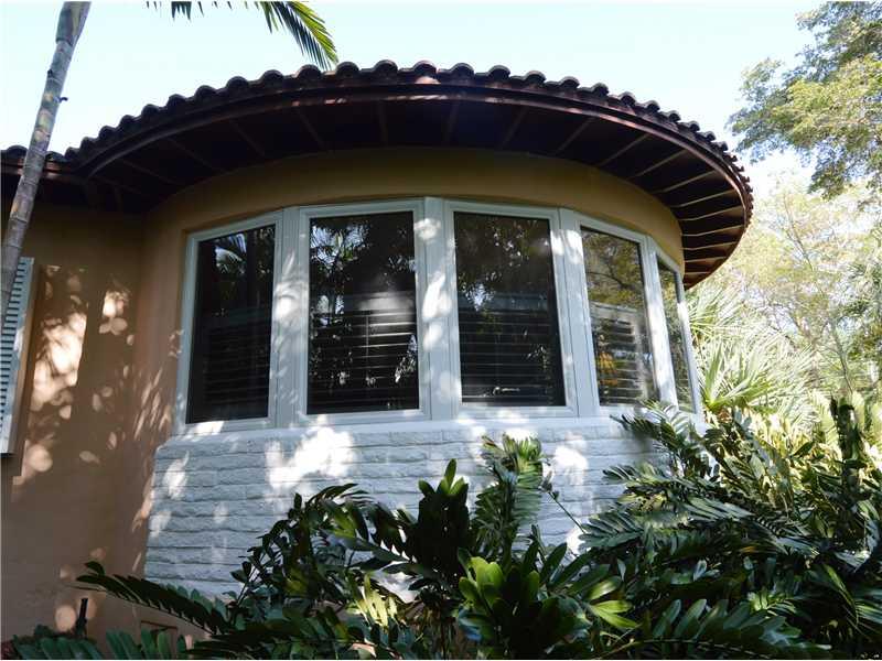 Choice Platinum Triangle location. Architecturally distinctive, turn-key 2742 sq' 3 bedroom 3 bath home with impact glass, hardwood floors, cathedral pecky cypress ceiling & massive fireplace in living room, incredibly charming rotunda shaped family room, formal dining rm, beautifully updated kitchen opens to 2nd family rm. Covered screened porch off kitchen, superb master suite.13,000 sq' corner lot, walled & gated. Circular driveway provides easy parking. No garage or carport but probably room for one.