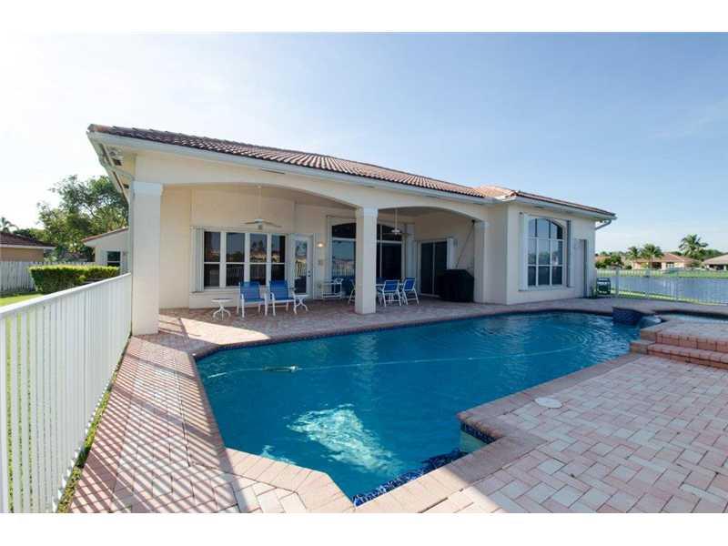 One-of-a kind waterfront, pool home with panoramic water views! Spacious 4/3 features pavered driveway and patio, three-car garage, ceramic tile and wood floors, recessed lighting, formal dining room, eat-in kitchen, high ceilings and so much more. Bar is not included. If interested, can be negotiated separately. Make us an offer today!