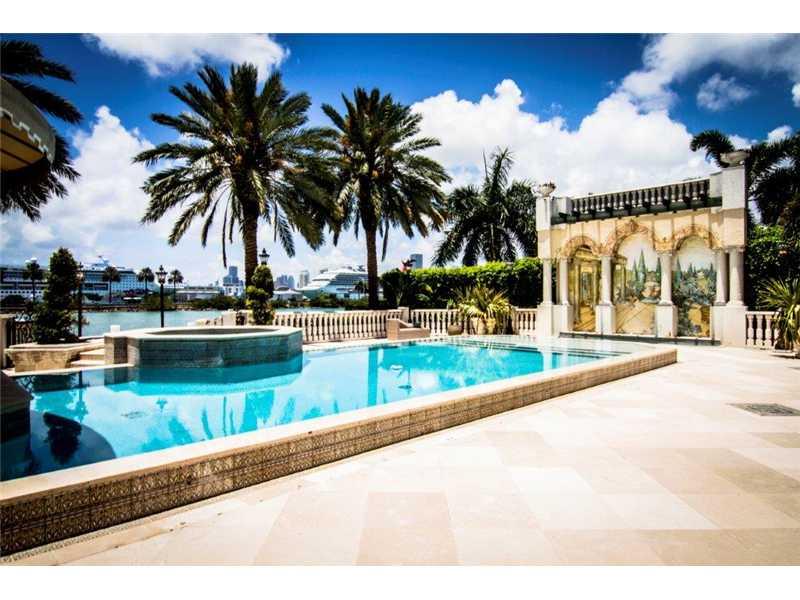 One of a kind waterfront estate in prestigious Palm Island. 11,000sf of gorgeous and lavishly designed interior space. Your buyer will fall in love with this palatial, Romanesque sanctuary or redesign its impressive layout to suit their taste. Spectacu lar views of the bay and the ever expanding Miami Skyline can be seen from every room with a rooftop area that can easily be configured for rooftop entertainment with a view. Magnificent pool, 100ft of water frontage, easy ocean access, rare, huge lot.