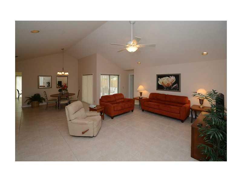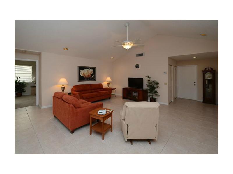 Immaculate! Outstanding 3/2 one story set on corner lot surrounded by lots of greenspace, 60 ft between backdoor neighbors!Courtyard entry. Huge 22x19 screened, tiled & roofed patio with pass thru from kitchen, great for entertaining! Netural decor! Roof & A/C have been replaced. ACCORDION hurricane shutters. Split bdrm plan. FENCED yard. Friendly neighborhood w/mature landscaping. Steps to community pool & Town Center. Lawn maintenance & irrigation included in monthly maintenance. Furniture is negotiable