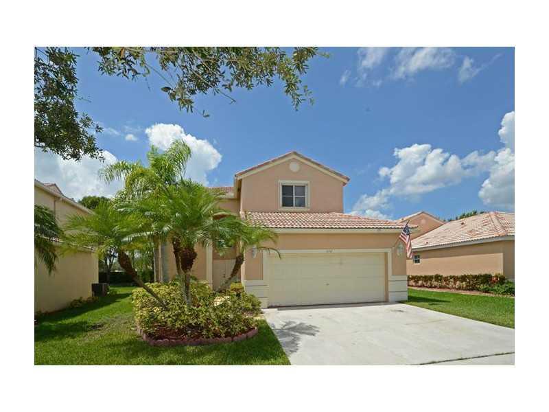 5BR/3.5BA Darby Five model with the Master Bedroom Suite downstairs. Kitchen boasts wood cabinetry, stainless steel appliances and tiled counter tops. Property is situated on a bermed lot with no neighbors behind. Screened and covered patio, accordion shu tters on all the windows. Ceramic tile flooring in the social areas and carpeting up the stairs and bedrooms. Just a short walk to the community recreational area and within walking distance to Eagle Pointe Elementary School.