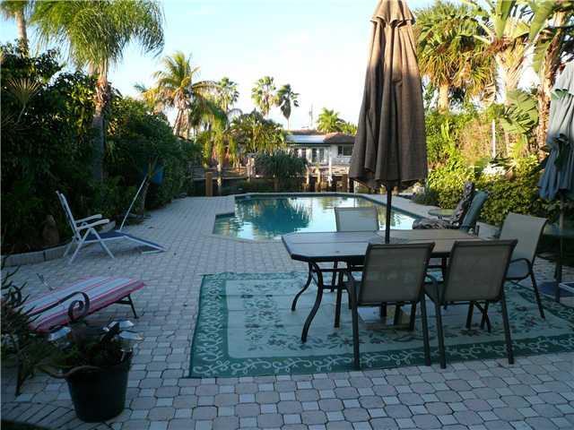 Desirable Lake Estates neighborhood situated on unique oversized corner lot with circle driveway. Additional driveway with large 2-car garage with workshop area. Comfortable one-story home features split floor plan, updated kitchen with granite counter to ps & beautiful cabinetry. Large pool with private dock for ocean access. Large brick paved patio with bbq area. Great home for entertaining & hosting guests. Converted Florida room currently office & convertable to bedroom. Verify all info for accuracy.