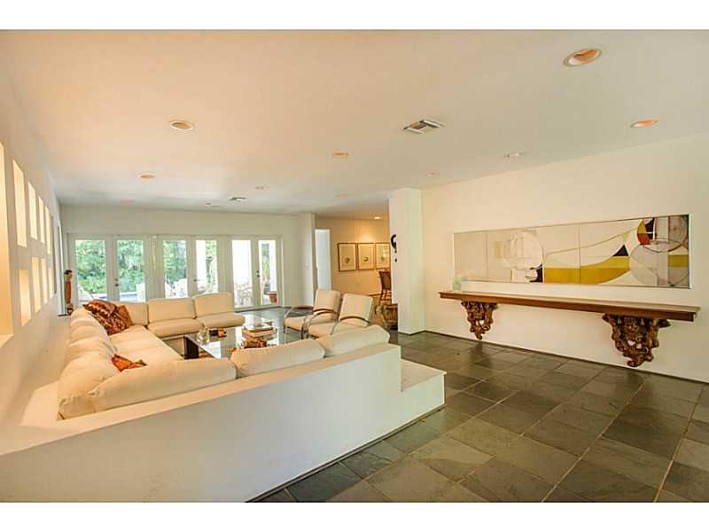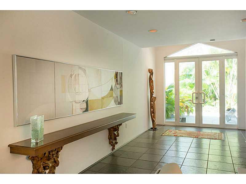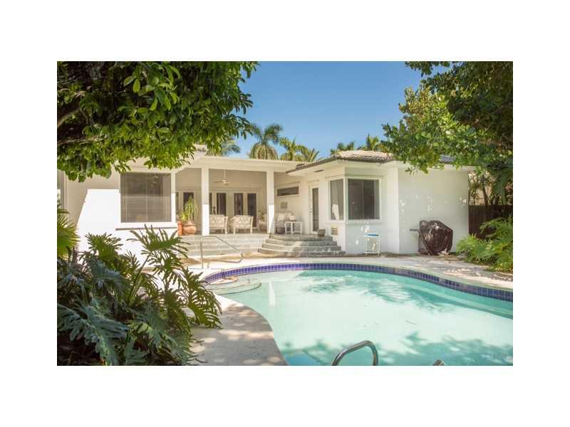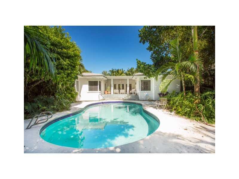 Live in the Billionaire's playground in this stylish Mimo chic 1 story classic. Completely private pool/garden area with covered terrace. Perfect for grand entertaining w/ high ceilings in great room. 2 car garage. Across the street from beach & ocean. Ex cellent home to display art & your collectables. Easy to show! Stand up basement under home for extra storage.