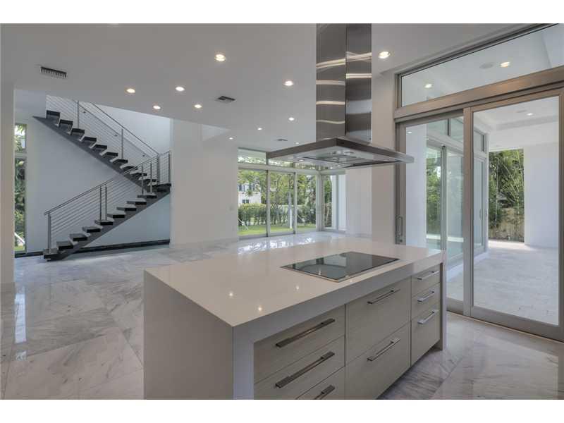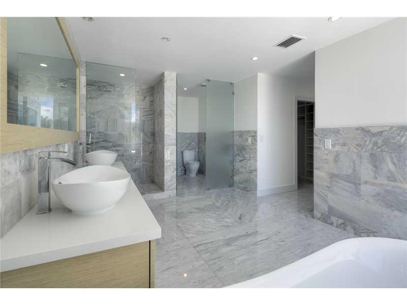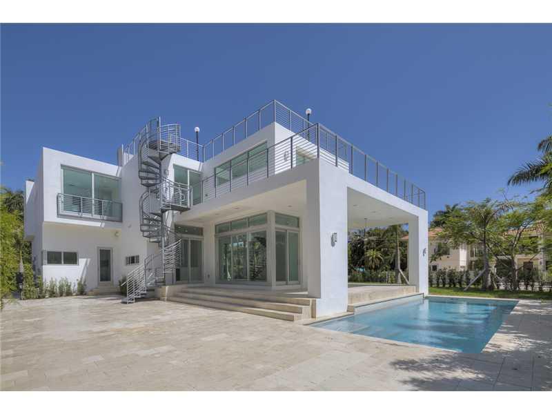Gated exclusive Hibiscus Island, Miami Beach. Brand new ultra-modern design luxury home w/ top of the line finishes & pool with limestone flooring. Completed May 2015; Foyer entrance has dramatic 26 ft. ceiling. 11 ft. ceiling throughout home. Wall to wal l 36"x 36" Italian Carrara marble floors, 4 beds/4 baths upstairs with water views from terraces & custom walk in closets, 1100 sq.ft. lighted roof top terrace & incredible panoramic views. 1 bed/1.5 baths downstairs. Fabulous indoor reflective pool.