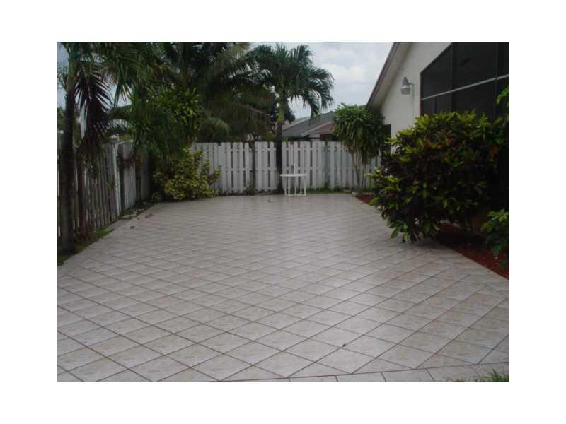 Modern & roomy 4/2, 2 car garage, one story SFH w/ vaulted ceiling. Has a living room & dining room and family room all tiled throughout the house. Has screened large patio and a large tiled deck in the fenced backyard. No neighbors behind this house. The re is an olympic size pool and kiddie pool directly across the street. HOA is very low at $50 per month. 2 blocks from 3 shopping centers and near A schools. Perfect family home in great community in West Sunrise.