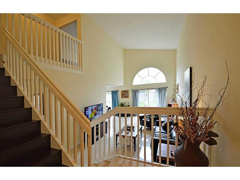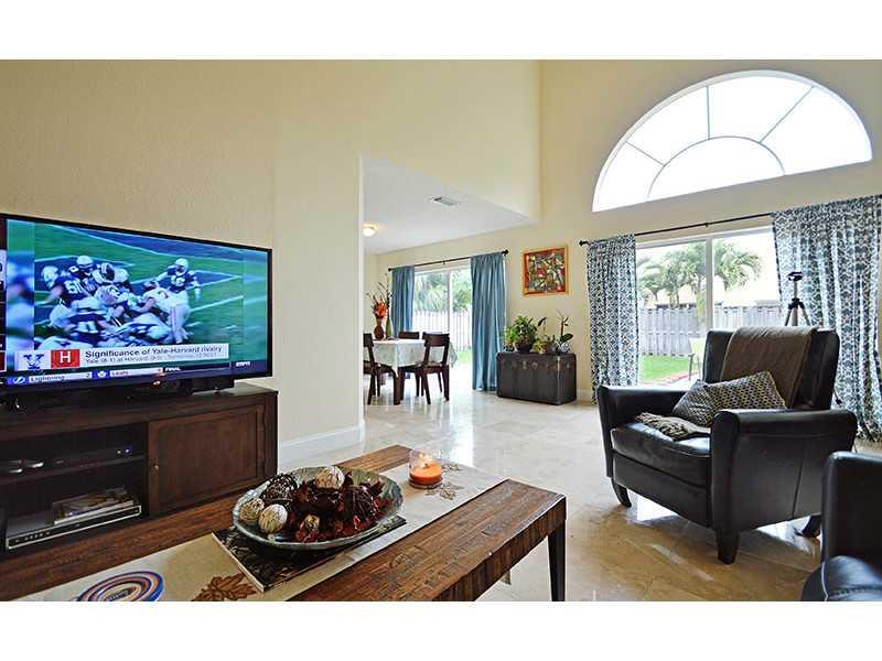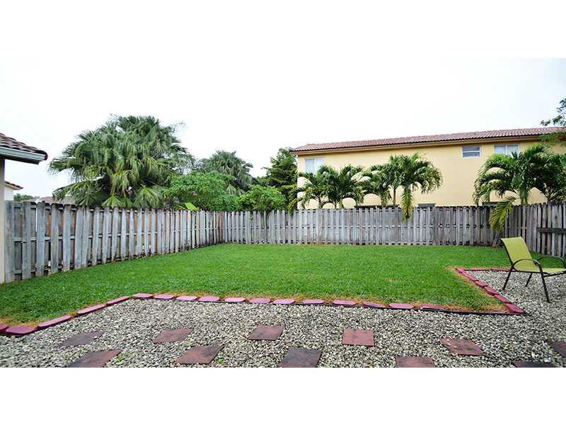 Beautiful 3 bed/ 2.5 bath single family home in a premier Doral Gated Community. This 2-story home has an upgraded kitchen with stainless steel appliances, granite counter tops and wood cabinets. All travertine tiles downstairs and newly upgraded wood flo ors upstairs. This home features an open environment, with high ceilings, 2 car garage and a large backyard with space for a pool. The community is close to major highways and great schools and 24 hr security, kids area and pool. Move in ready!