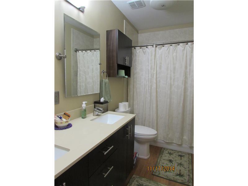 Interior Features:Recently renovated bathrooms. 12'ceilings in living areas,Tile throughout,Bamboo flooring in bedrooms.His and Hers walk-in closets.Renovated kitchen with built-in Sub-Zero refrigerator,and loads of storage.New diswasher,washer and dryer. High efficiency A/C and hot water tank.Fixtures and blinds included...EXTERIOR FEATURES: Front facing East.Lake view.Large screened patio.Accordian hurricane shutters.
