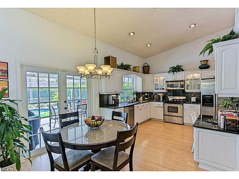 Must see this fabulous,immaculately kept 4beds/2.5baths pool home in highly sought after neighborhood in Coral Springs. Beautifully designed open floor plan great for entertaining. Fully upgraded w/granite counter tops and SS appliances, wood floors throu ghout. Lots of storage, roof 6 yrs. old,A/C replaced few months ago, hurricane shutters,security system. Big screened in pool and huge backyard. Shows beautifully, just bring your toothbrush and enjoy!No HOA fee!Great school district! It will not last!!