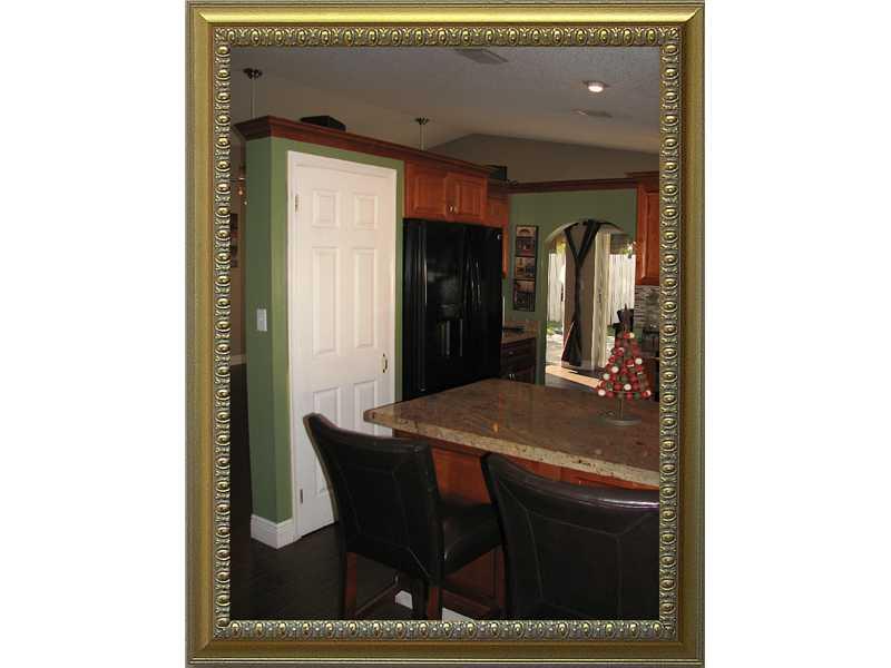 This triple split bedroom plan boasts a courtyard entrance, vaulted ceilings, an open and flowing plan and beautiful upgrades! New cabinet and granite counters in kitchen and both bathrooms make this home complete and ready to move in. Oversized fenced ya rd includes large patio for entertaining. New tile wood-look flooring, whole house intercom, mini fridge and accordion hurricane shutters are an added bonus. Third bedroom makes great office or den. Enjoy Silver Lakes living & fantastic schools!