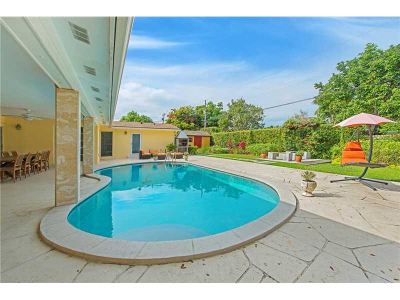 Beautiful gardens meet bright interiors in well-maintained Pinecrest home. Professionally renovated landscaping, split floor plan provides informal space for family & formal space for entertaining. Spacious living/dining room flows into professional kitch en w/Thermador appl, wine cooler. Captivate guests with new fire pit, & Argentinian parilla BBQ surrounding the pool. Work out in the fully equipped gym & sleep among dark wood & marble. Appreciate the serenity of a natural oasis thru out this home.