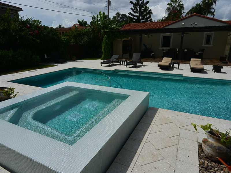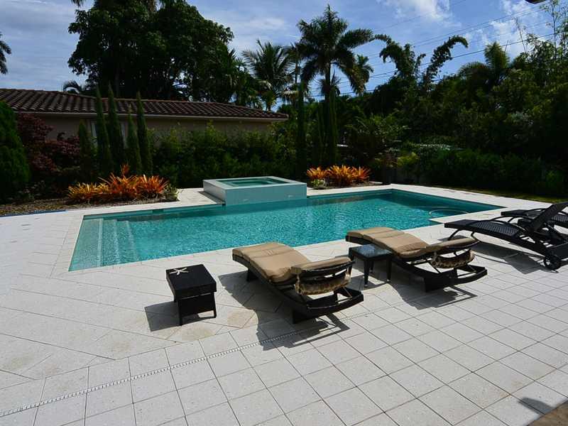Exquisite remodeled home on a beautifully double corner lot in the lakes district. Marble floors throughout,large family room opens up to a spectacular view of the new heated CO2(carbon) pool area with an infinity heated spa that overflows in the pool. In frared sauna under the covered pergola. Water system, filter and conditioner in house. Ionized water in the kitchen(life source water). New AC, plumbing, electrical and roof. Custom built impact windows and doors. Alarm and camera system. Fenced in yard.