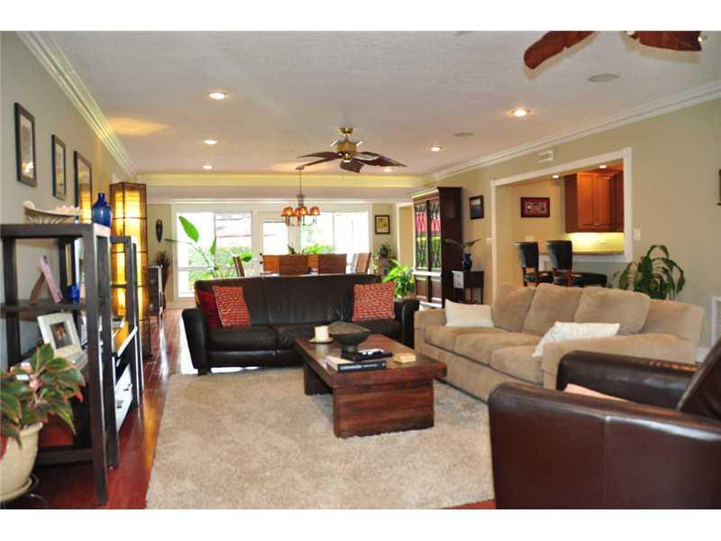 Elegant,sophisticated home in the heart of Hollywood Lakes,walking distance to Hollywood Beach.Brazilian cherry wood floors,knock down walls & ceilings,crown molding,Hunter Douglas silhouette window treatments.Open kitchen w/granite top bar sitting area & countertops,recessed lighting,gas stove,cabinet lighting & stainless steel appliances.Large master bedroom & en suite bath w/Jacuzzi,shower, travertine floors & walls,double granite vanity.2nd bath w/glass doors & travertine.Alarm system.Fenced yard.