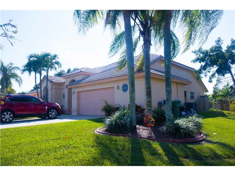 Exclusive Trails of Pembroke Pines. 4/3 home on Builder's Acre with wide views of large fully fenced yard, perfect for pets and kids! High ceilings, archways, decorative fire place and beautiful kitchen. Tiled throughout with wood laminate in bedrooms, upgraded bathrooms and screened patio that allows you to view the tranquil sunsets. The home has a beautiful, separately fenced, pool and spa, 2.5 car garage, quiet cul de sac and city water. New academic charter school to be built in walking distance.