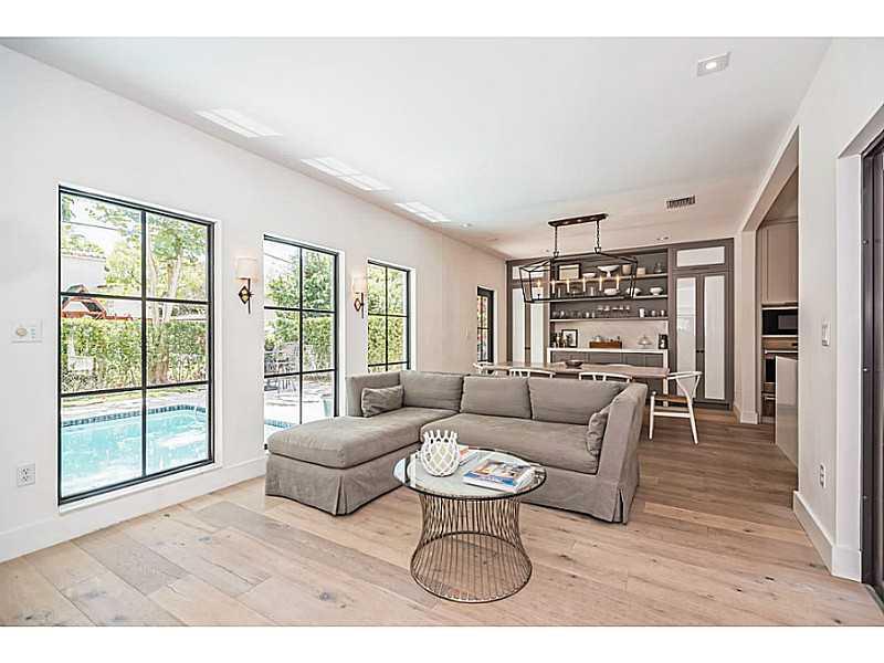 Beautiful & charming 4 bdrm home filled with streaming sunlight. Superb Coral Gables Golden Triangle location with great curb appeal on a tree-lined street. Stunning new kitchen with 6 burner Wolf gas range, Bosch dishwasher, Sub-zero refrigerator & gorg eous marble counter-tops. New roof, new AC, new water heater, new impact doors & windows. Gorgeous center atrium adds to this homes special appeal. Three spacious bedrooms on 2nd floor. Interior laundry room, pool and one car garage.