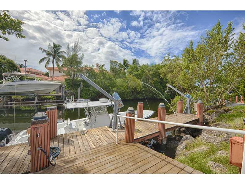 Waterfront 1 story house in Sec 1 on 27,908 sqft lot.Foyer w/marble floors. Living & dining w/wood floors overlooking pool & waterway.Left side of house has office,guest bedroom w/bath & cabana bath.Right side of the house has large updated kitchen w/gran ite,Monogram S/S appliances, island w/attached eat-in-table. 2+ bedrms w/baths & large master suite, bath w/2 sinks,tub & shower.Small patio off master suite.Large covered terrace, built-n-bar & wood deck.Pool, dock,electric davits and accordion shutters.