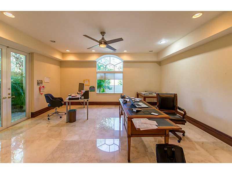 Elegant European style gated villa on oversized lot in South Coconut Grove. Enter into a grand foyer with dramatic staircase & double height ceilings. Light filled living spaces with the finest finishes throughout including Brazilian hardwood & marble flo ors, mahogany doors and impact glass. Expansive main floor master suite & 3 upstairs bedrooms w/ en suite baths. Downstairs staff quarters. French doors open onto covered terraces overlooking 40' heated lap pool surrounded by lush tropical garden.