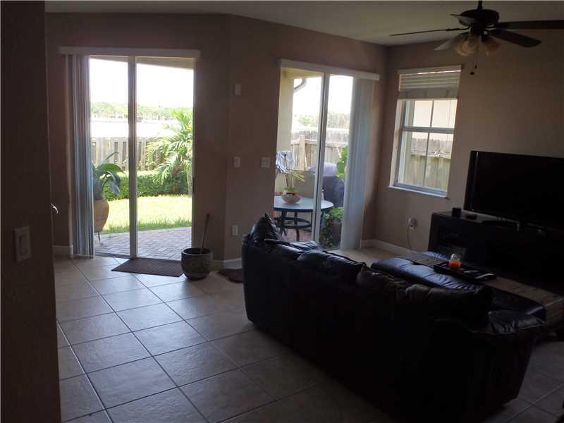 BEAUTIFUL ONE STORY HOME IN EXCELLENT CONDITIONS 4 BEDROOMS, 3 BATHS WITH VERY NICE OPEN LAYOUT, FOYER ENTRANCE LEADS TO LARGE OPEN SPACES OF LIVING, DINNING & FAMILY ROOM. NICE KITCHEN WITH GRANITE COUNTER TOPS AND ADJACENT BREAKFAST AREA. NICE BACK YARD WITH NO NEIGHBOURGS AT THE BACK, THE COMMUNITY IS BUILDING A PARK! TILED FLOORS THROUGHOUT. HURRICANE ACCORDION SHUTTERS. CLUBHOUSE, POOL, GYM TENNIS & BASKETBALL COURT. NEAR MAJOR HWYS, SHOPPING CENTERS AND RATED "A" SCHOOLS.