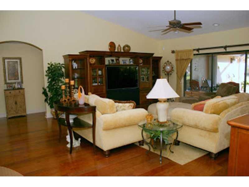 True pride of ownership prevails in this open spacious custom built home in manned gated Ridgeview community. Drive up to this great home featuring circular driveway & double door entry. This expanded floor plan features all one level of solid wood, bamb oo & laminate flooring , vaulted ceilings, 2 zone newer ac, accordion shutters & gorgeous fully upgraded & remodeled kitchen & bathrooms, spacious bedrooms & an expanded covered patio pool & pavered deck to make this home a dream come true on wide water.