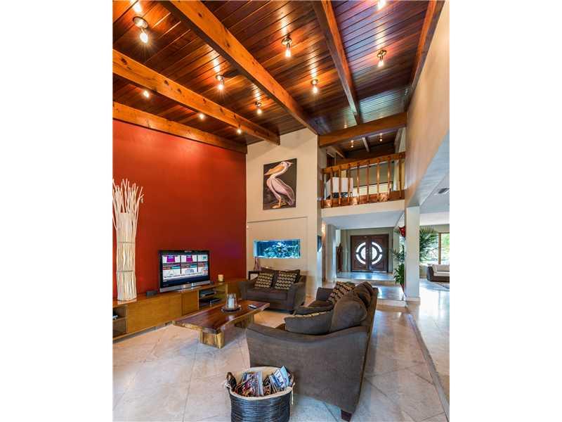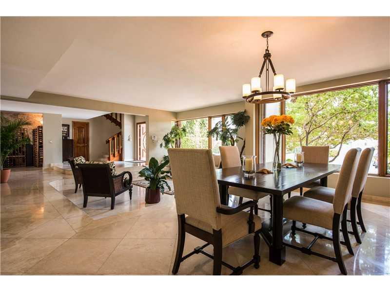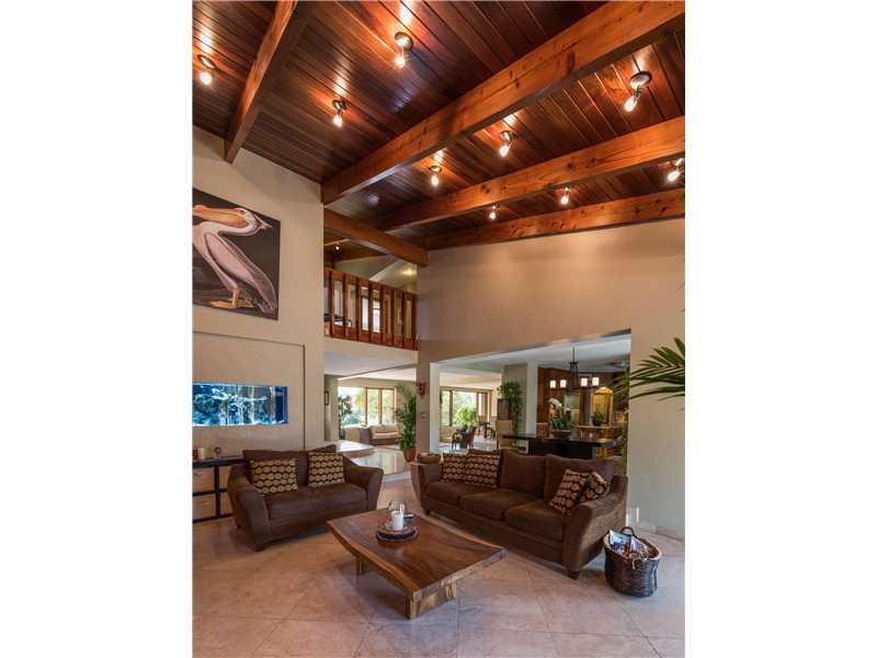 Smashing bay views w/ protected deep water for your boat from this 4 bedroom, 5.5 bath Florida Contemporary waterfront home in luxurious guard-gated neighborhood. One lot off Biscayne Bay w/views throughout, open airy interior w/soaring ceilings, marble t hroughout, open state-of-the-art gourmet kitchen, all updated baths w/top-of-the-line fixtures & fittings, luxurious master suite w/balcony overlooking the bay. Negative edge pool, cabana bath, tiki hut, dock, boatlift, fish station. 10 mins to the ocean.