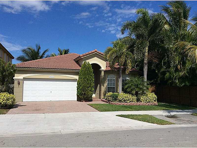 Home sweet home. Beautiful home with double doors at entrance and ceramic tile floors. Blocks from Turnpike. Excellent community. Clean and quiet. Spacious rooms with nice flow. Split bedroom plan. Only 10 years old. Nice patio with lawn, coconut, an d mango trees. HOA fee includes membership to Island at Doral Clubhouse, with pools for kids and adults, jacuzzi, tennis, basketball, gym and private rec rooms. Fenced yard.