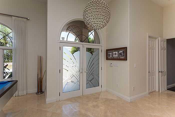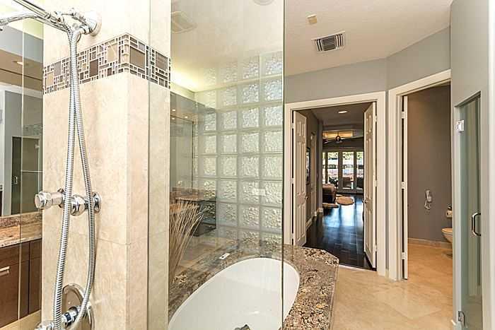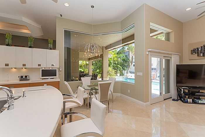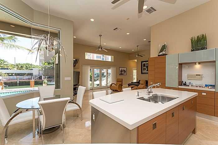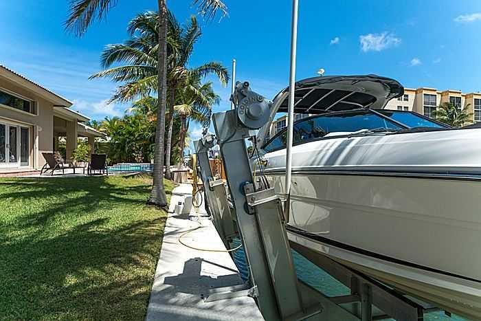 Beautiful renovated one story modern house on oversized lot with 110 FT on waterfront. Dock plus 15,000 pound boat lift. Ocean access and no fixed bridges to Haulover Inet. 12 FT ceilings in main areas. Spacious master suite overlooking water, walk-in cl osets, and hardwood floors. Large master bathroom with separate spa and shower and double marble vanities. Marble floors throughout house except bedrooms. Spacious modern kitchen opens to family room and overlooks roofed patio area, pool spa and water.