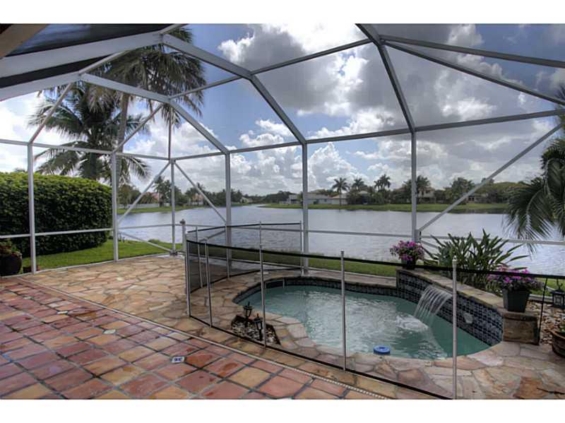 Unwind and melt away in this 4/2.5 pool/lakefront home nestled in a prestigious gated community. This tastefully remodeled gourmet kitchen comes complete with stainless steel appliances & wine cooler. An oversized screened patio with a jacuzzi pool is ide al for outdoor entertaining. The spacious master suite with its own den enhances the overall space. Custom interior shutters & hurricane accordion shutters. Priced to sell. Won't last!!! Just bring your toothbrush.