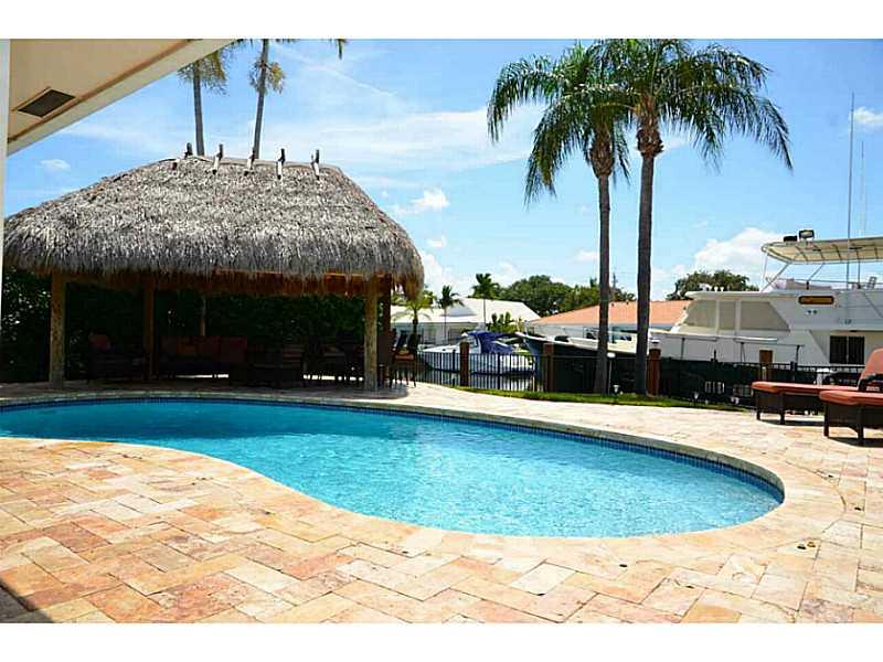 IIT'S ALL ABOUT THE BOAT, THE DEEP WATER, NO FIXED BRIDGES. 80' OF WATERFRONT & 70' OF DOCKAGE (WITH ELEC/WATER). THE WHOLE BACK YARD IS YOUR OWN LIL MARGARITAVILLE WITH GAS HEATED POOL, TRAVERTINE STONE DECK, BUILT-IN GAS BBQ AND HUGE TIKI HUT TO ENTERT AIN ALL YOUR FRIENDS AT THIS LUXURY DREAM HOUSE. KITCHEN HAS WOOD CABINETS, GRANITE COUNTERS, SS APPLIANCES AND OF COURSE, VIEW ON THE WATER. HARDWOOD FLOORING THROUGHOUT HOUSE. NEWER A/C AND TANKLESS HOT WATER HEATER. DONT WAIT! WONT LAST.