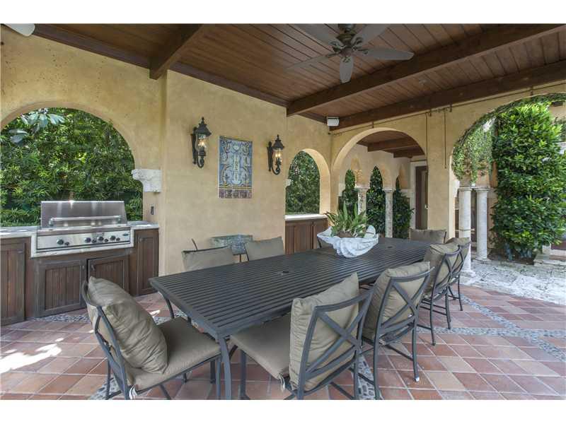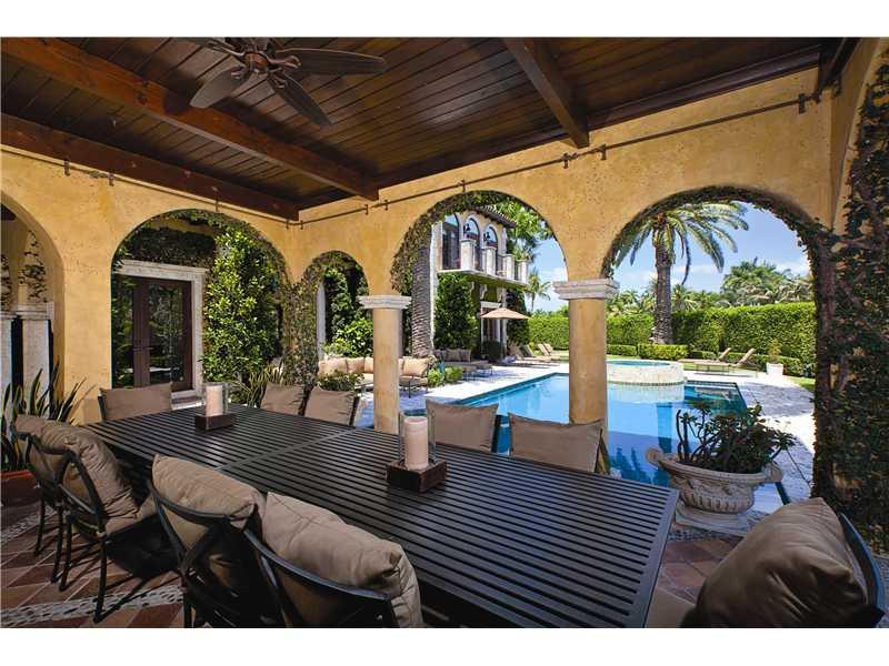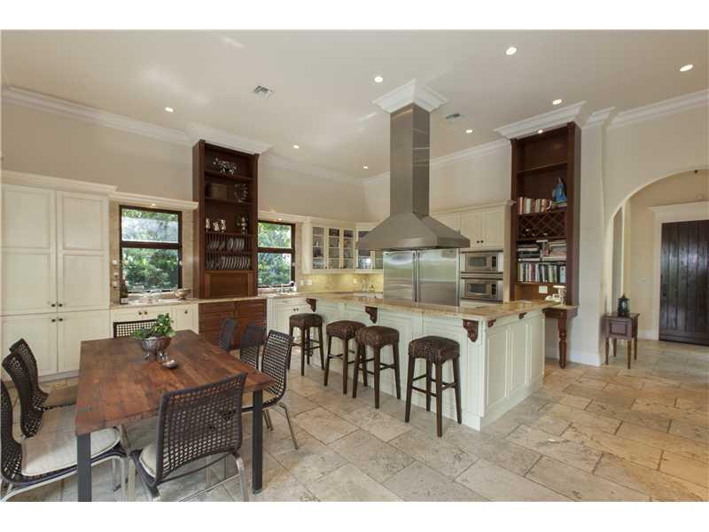 Spectacular ivy covered waterfront residence on prestigious guard-gated Sunset Island III, 156 ft of waterfront w/the most beautiful wide lake views & new large dock. Home offers spacious living room w/fireplace connecting to bright & light family room su rrounded by keystone lined walls & frames around arched windows & wood trestle ceiling, state-of-the-art kitchen w/granite-topped cooking island & breakfast area, sumptuous master suite w/3 walk-in closets, 2-sty guest house and heated pool. Very private.