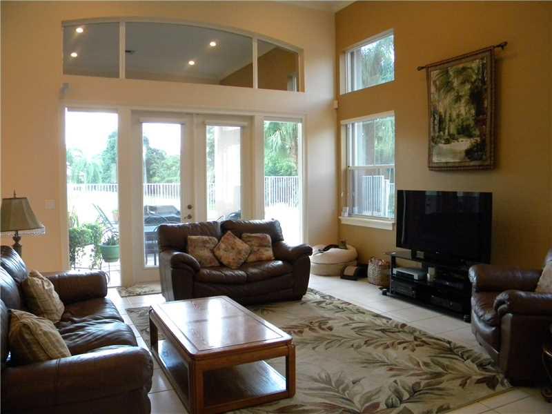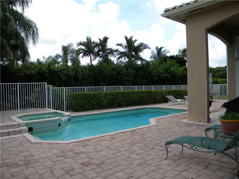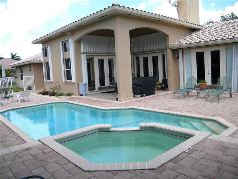 Magnificant 5/4.5 hm features 1/1 guest house w/covered walkway to main house.High ceilings,recessed lighting,crown moulding & knock down.Tile floors, shutters, high-tech sec system.Cen vac. One 4ton & two 2ton a/c units.Loads of storage. Split br plan.La rge Master Suite w/sitting area,shower,spa tub,custom dbl closet w/ built-ins.Kitchen has wood cabinets/granite counters.LR has white coral rock fireplace.Amazing pool area w/jacuzzi, covered patio and cabana bath & brick pavers. Quiet cul de sac.