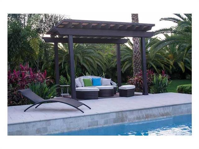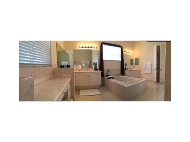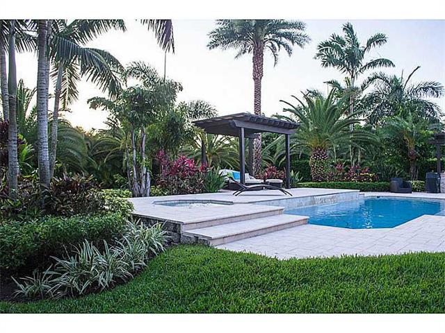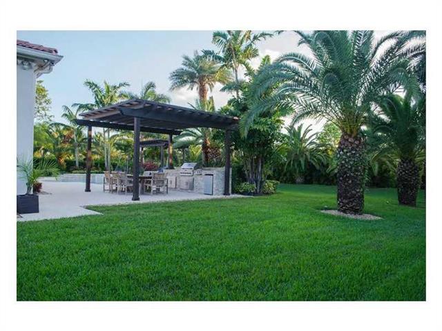 Magnificent 5/5 + Den/Ofc w/3 CG & pavers driveway, large enough to accommodate 5+ cars. Lush & gorgeously landscaped 4,798 sq. ft. Gated Community. Large back yard w/stunning palms & plants. Pool/Jacuzzi area with artistic coral floors, BBQ Island w/dark accent wood pergola coverage, & addit'l covered sitting area. Security cameras installed in all corners. New SS appliances, with granite kitchen countertops & a butler's pantry. Dual vanity in masterbath w/jetted roman tub & a spacious open shower.