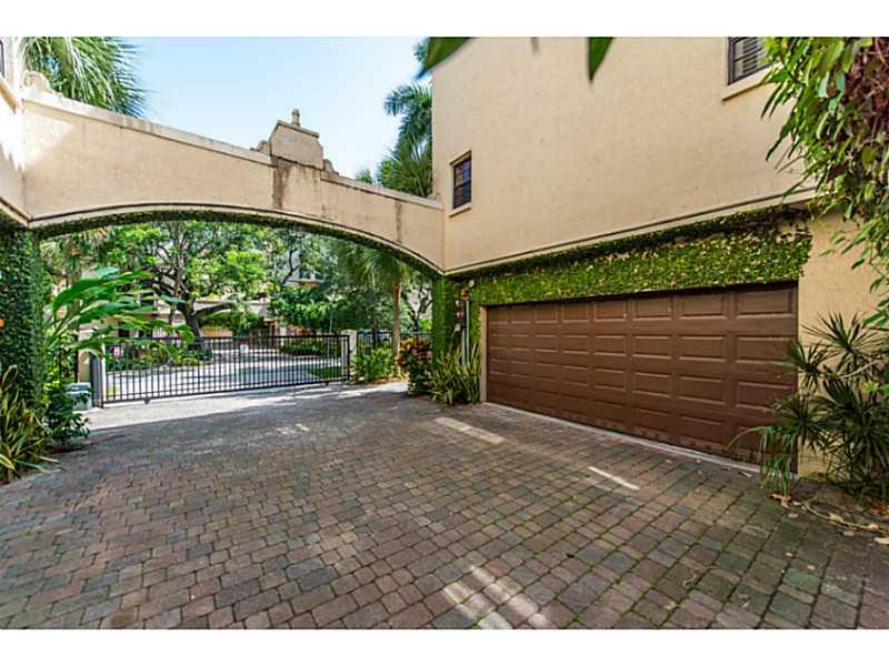 Lovely townhome in a small complex just minutes from bay front parks & marinas. Enter through the electric gates into a brick-pavered driveway & your own private 2-car garage. Desirable corner unit with light filled open living spaces. Master suite with marble bath & balcony. Walk-in closets in both bedrooms. Fenced outdoor area with lush tropical landscaping. Ground floor A/C'd storage room is potential office space. Close to downtown, MIA and the Grove village center's galleries, boutiques & cafes.