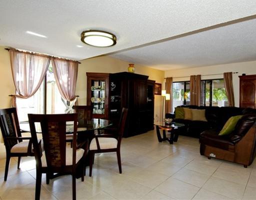 Immaculately kept corner town home in convenient Eastern Shores near beach and malls. New glamorous kitchen with wood cabinets - granite counter tops and granite topped table - all overlooking the canal. Kitchen opens to family room with custom wood bui lt-ins including a wine cooler. 18 x 18 beige tile floors downstairs and blonde wood in the bedrooms. Architectural block wall going up staircase and loads of storage. Very large deck ideal for entertaining. Front walled patio. *Furniture for sale!*