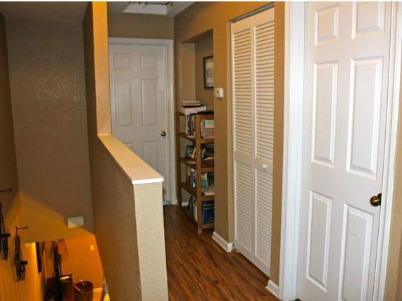 Very private waterfront 3 Bedrooms 2.5 Baths townhome in the gated section of Courtyard at the Grove. Covered & screened patio, and no neighbors behind. Guest parking and passive park right across the street. Diagonal ceramic tile flooring in the living a reas, Laminate -wood looking- floors in second floor hallways, bedrooms and stairway. Eat-in kitchen with 42" cabinets and newer appliances. Brand new washer & dryer inside the townhome (under A/C not in the garage). Crown Molding / Accordion Shutters.
