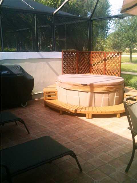 Gorgeous partially furnished corner townhome with screen patio, jacuzzi and view to the golf in a guard gated community. !!! No expenses spared on this 3 Bed 2.5 Baths 1 car garage corner house featuring a large master bedroom on first floor and two large bedrooms upstairs !!! Updated kitchen and bathrooms, lush landscaping. Ready to move !!!