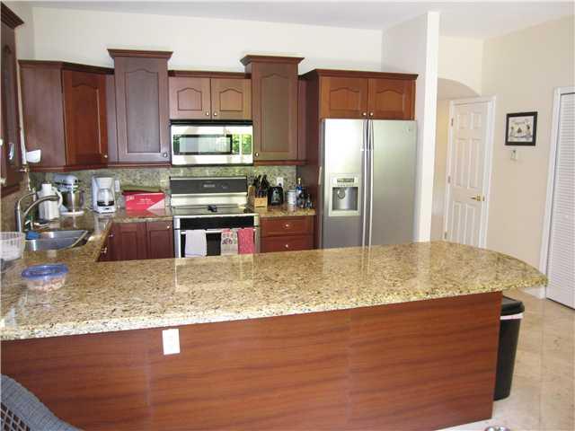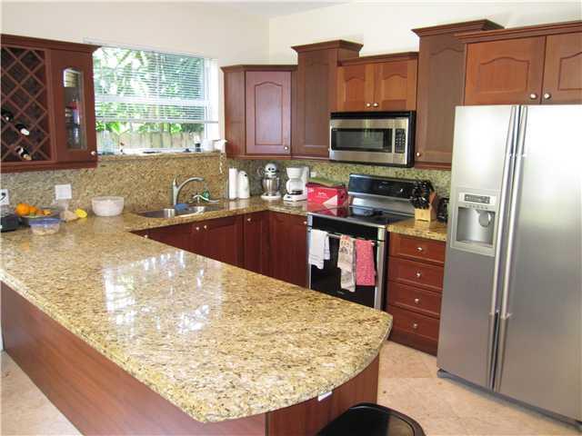 Luxury, well maintained home, located on a dead end street with limited access. Three bedrooms, two and a half baths. Travertine floors downstairs, less than three year old wood floors on the second floor. Master suite with sitting room. Master bathroom w ith separate tub, walk in shower and dual sinks. "Impact windows". Private pool. Covered private patio with wet bar. One car garage plus 2 car gated parking and plenty of street parking for guests. Upgraded kitchen appliances and washer/dryer.