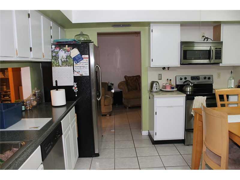 3/2 House located on a cul-de-sac. This house has a 2 car garage and all windows have hurricane shutters. Family room and living room, has been divided by a frame and drywall, easy to collapse and reopen. Tile in the main areas, and carpet in the Master B R. Eat in kitchen with S.S. appliances. Full size washer and dryer. Nice size screened in patio with enormous fenced in yard.