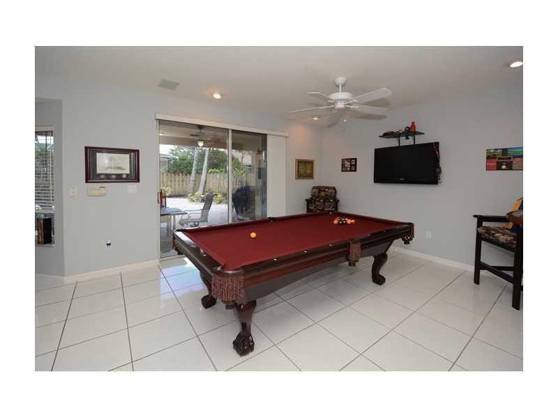 This one has it all! Fabulous 4/3 with a full bed and bath downstairs. Large rooms. Upgraded Kitchen with cozy breakfast area. Bright, cheery and freshly painted inside and out. All lighting fixtures have been upgraded. Elegant crown moldings. Master bat h has dual sinks and roman tub. Spectacular pool with heated spa and sun deck. Huge covered patio (a $13,000 builder upgrade!) Beautiful landscaping and private lot with no 2 story homes behind. Excellent Davie schools and security of a manned guard gate