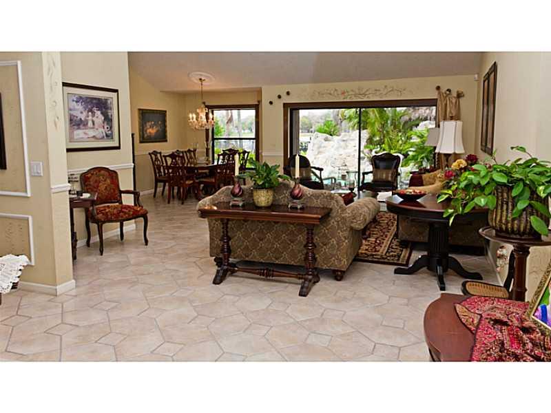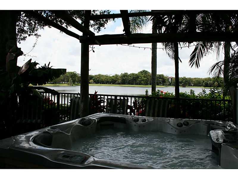 Exotic landscaping welcomes you to this 4 bedroom 3 bath tropical get-away home inside 24 hour gated community. Enjoy the multi-level rock water fall as it cascades into a gorgeous, one of a kind pool nestled amongst luscious gardens with beautiful lake v iew. To top off this magical setting, watch the sun go down on the lake while relaxing in a foaming hot tub hidden under a canopy of palm trees. Enjoy views of the pool and lake from living,dining & family rooms, kitchen & breakfast area. A MUST SEE!