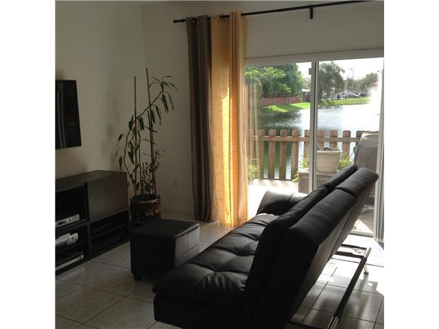 Beautiful 2 story townhome on a corner, Open dinning-living room combination w/great open kitchen layout overlooking the lake, spacious rear patio that backs up to the lake, accordions shutters, tile floors thru out, gated community conveniently located i n the heart of Doral. Larger than tax roll as per owner (1,620 sq ft) C model