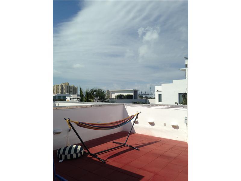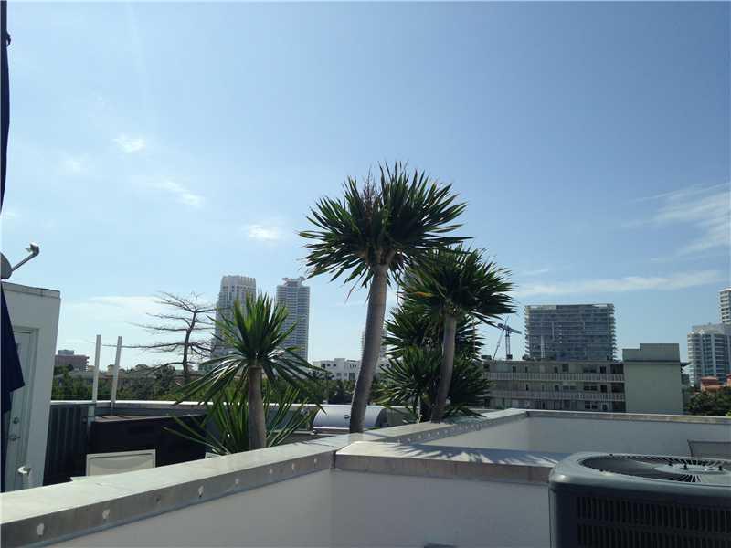 Unique, beautiful 2bd/3 full bth sunlit semi-detached townhouse w/ open living spaces, 15'(est.)high ceilings & floor-to-ceiling windows looking out on a quiet green grove neighborhood South of 5th. Hardwood floors throughout, stainless steel kitchen appl iances, 2 balconies & 700 s.f. private roof garden deck w/ panoramic views & 2 indoor parking spaces adjacent to rear door. Walking distance to the beach, marina, Alton shopping center (publix, best buys etc.) & many great resturants.